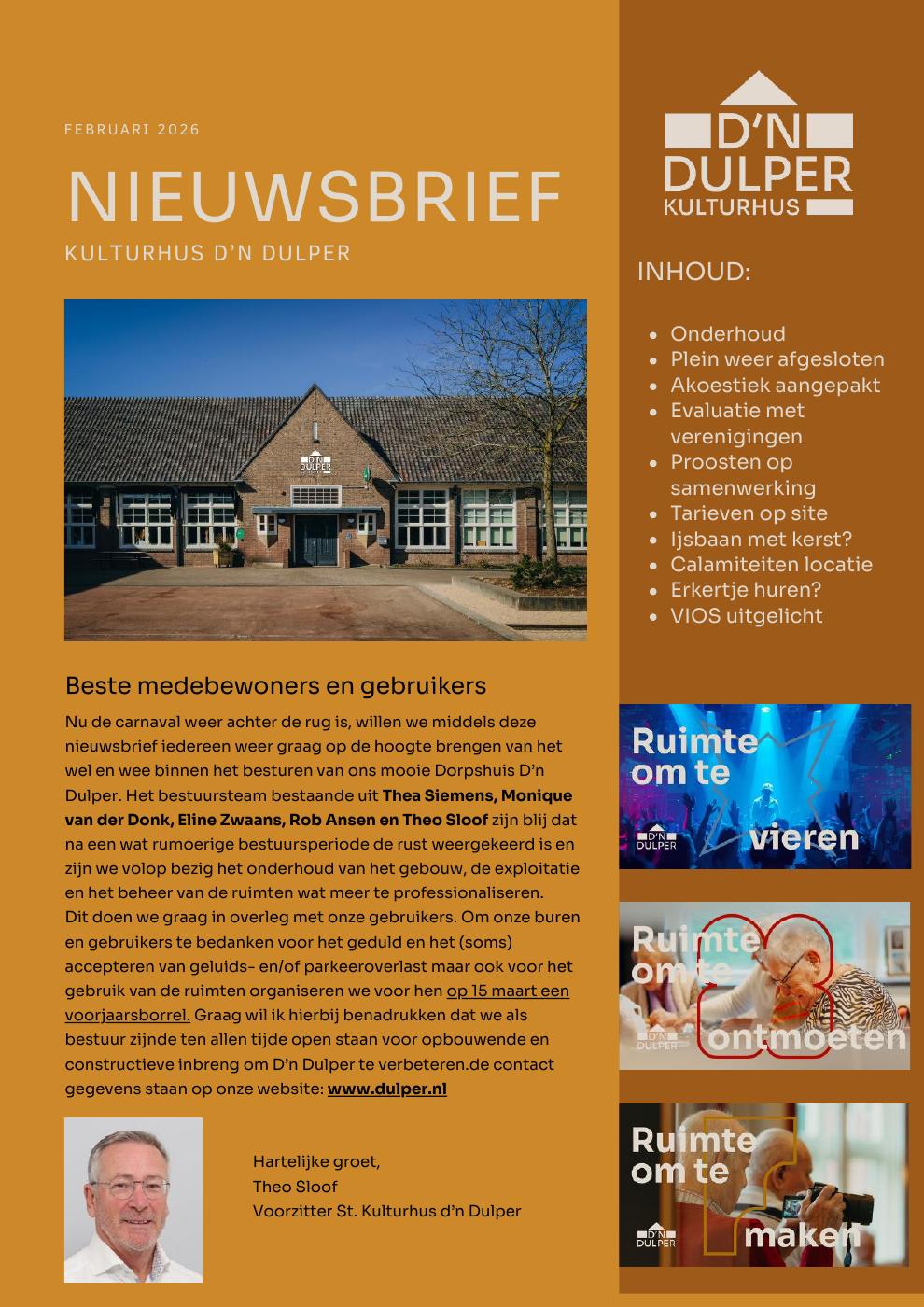 Nieuwsbrief Februari – Bestuur van Kulturhus d’n Dulper